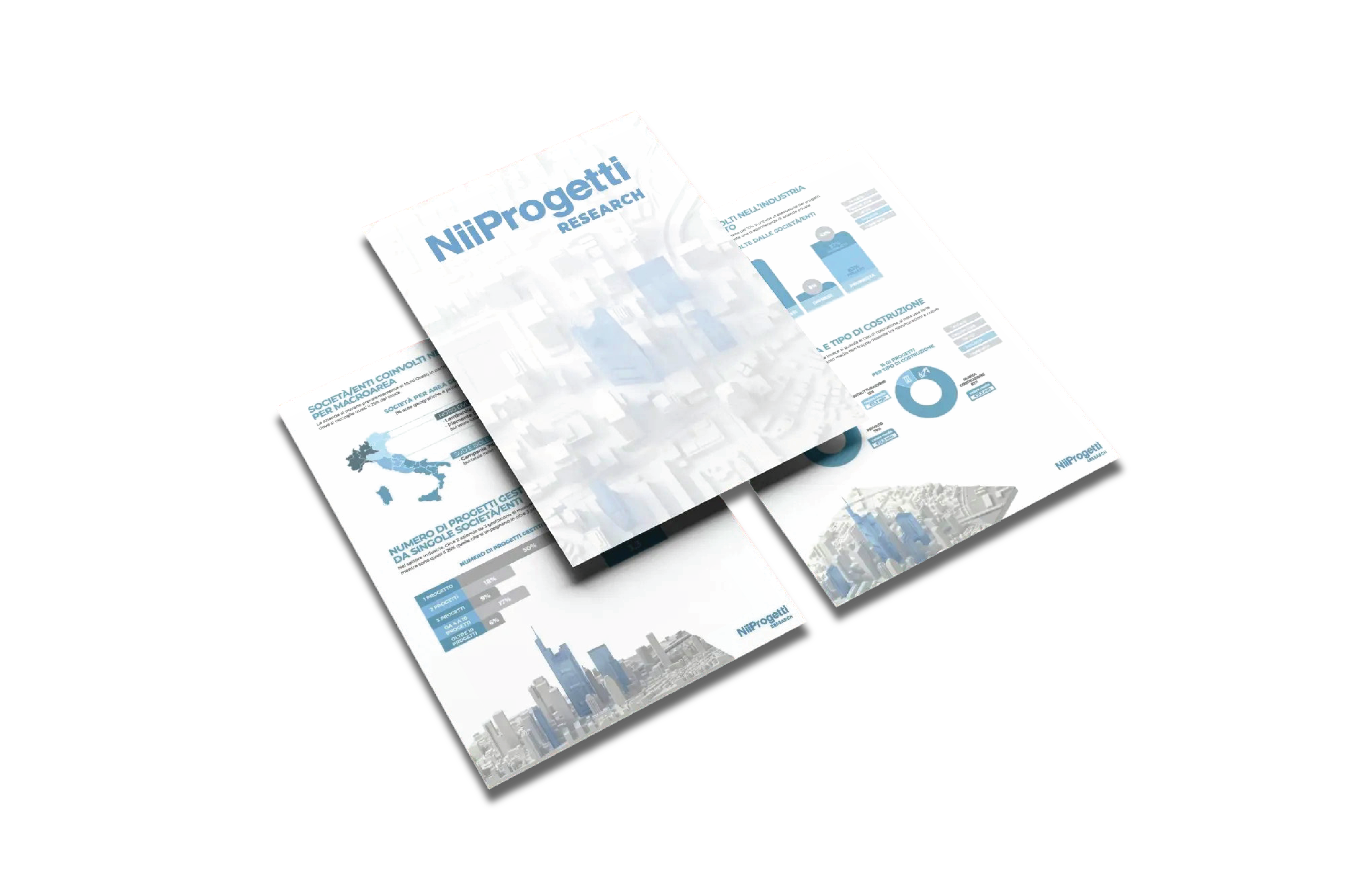A cadenza periodica NiiProgetti Research elabora e pubblica approfondimenti mirati sui singoli settori edilizi, risultato dell’attività di costante monitoraggio di progetti e cantieri attivi sul territorio italiano svolta da NiiProgetti, attraverso l’aggiornamento quotidiano delle anagrafiche di progetto che consentono all’utente finale di individuare in anticipo le opportunità d’intervento nel proprio settore di competenza e le relative occasioni di business.